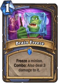 And while I like the design, the card itself is… mediocre. Neither part is really good. Freezing a minion for 1 mana is bad, it’s one part of Ray of Frost. Dealing 3 damage to a minion is really good for 1 mana, but the fact that you need to combo it will make it much harder to use in the early game. E.g. Turn 2-3 when you want to remove some small minion you might have nothing to combo it with, but that’s the time when small removal are most useful. If you Combo it out, it’s 1 mana Frostbolt that can only target minions. But that’s the problem – the need to combo it out. In the late game it doesn’t matter, but it does early.