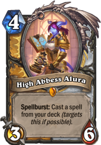 It’s an interesting build-around card. If you don’t curate your deck to fit it in, it’s just terrible. I mean, let’s take Galakrond Priest as an example. The Spellburst effect might be pulling out Shadow Word: Pain from the deck and casting it on this minion. Amazing, right? Or let’s say some Paladin deck with Subdue. Great, you now have a 4 mana 1/1. As you can see, all of the cards like that need to go. What you want to have instead is either buffs (since it will be the target 100% of time) or cards that don’t target anything and are just good casts – card draw, spells that summon things etc.