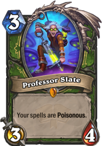 Interesting card. Giving your spells Poisonous means that any damage spell kills a minion immediately (assuming it can damage it – so it won’t kill Divine Shield minions, for example). The effect is really strong, the card also has premium 3/4 stats for 3 mana. And yet right now I don’t think that it would see that much play. Why is that?