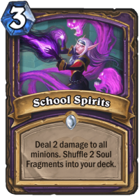 This is one of the Soul Fragment cards which just don’t fit into a faster deck. While you can try to run Soul Shear in Zoo Warlock, and you probably will if you build it the way I think people might want to build it, School of Spirits just doesn’t fit there. Since it damages the entire board, including your own, it will only be good when you’re behind. But as a Zoo Warlock, you do everything to NOT fall behind, so you’d rather run cards that help you win the tempo war and not maybe make a comeback.