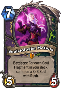 Unlike all the other pay-off cards, Malicia does not destroy your Soul Fragments. It just benefits from them – the more you have in your deck, the better. And honestly, since it costs 7 mana, by that time you should have a bunch in your deck. Yes, you will draw some in the meantime, and you will spend some on your other pay-off cards, but since you shuffle 2 per card, and by T7 you probably draw a few of the shuffle cards, it shouldn’t be an issue.