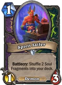 But let’s start with reviewing Spirit Jailer. It’s quite simple, actually. The card is just strong. 1 mana 1/3 Demon is already good. Add an extra upside – shuffling two Soul Fragments into your deck – and it’s great. Now add extra synergies to the same deck and it’s just insane.