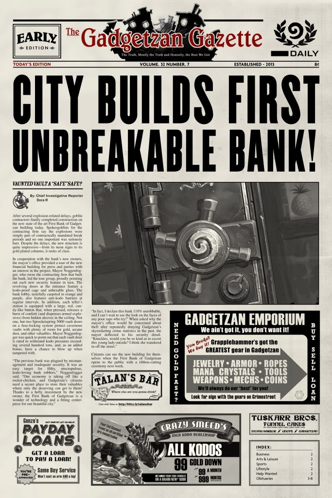 Citizens can see the new building for themselves when the First Bank of Gadgetzan opens to the public with a ribbon-cutting ceremony next week.