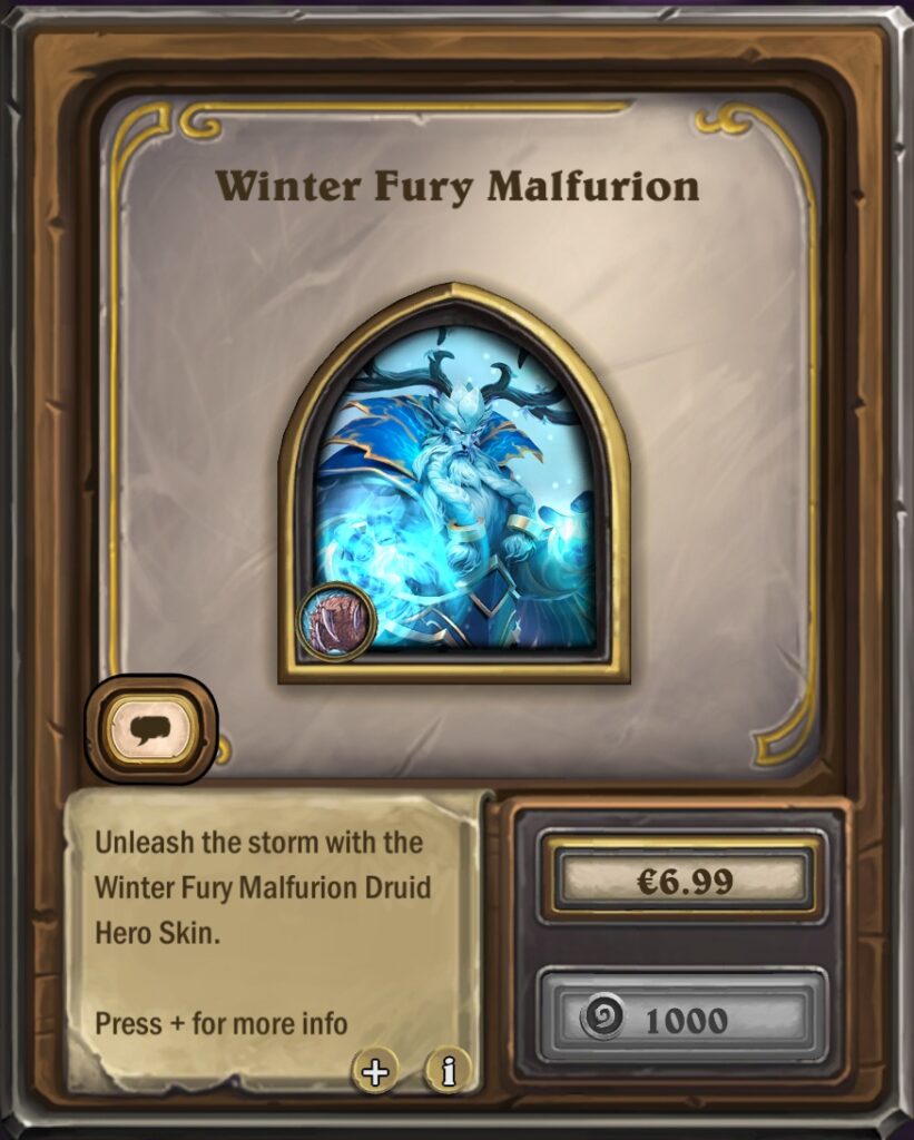 - Winter Fury Malfurion (1000 Gold or $7) – Returning lite Druid skin. Originally available from a shop bundle in September 2021.
