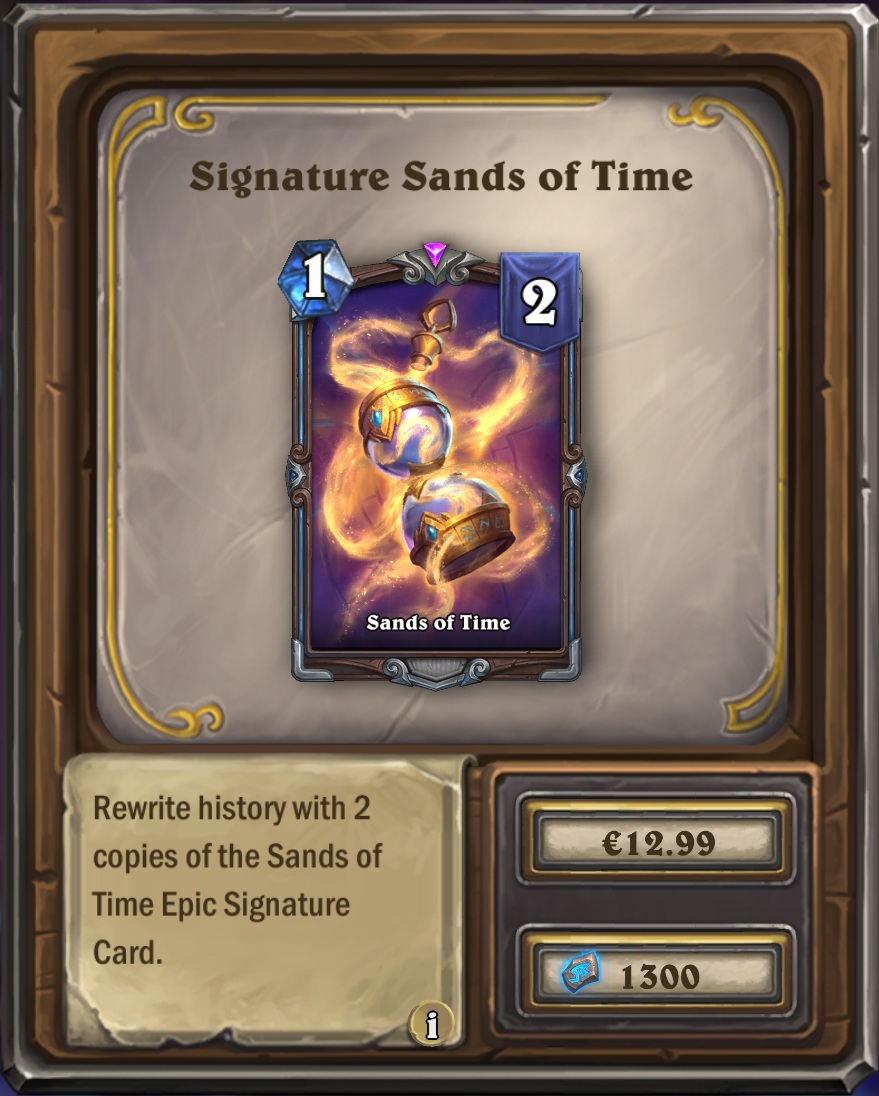 - Signature Sands of Time (1300 Runestones or $13) – 2x Signature copy of Sands of Time (normal version was available from a recent in-game event).