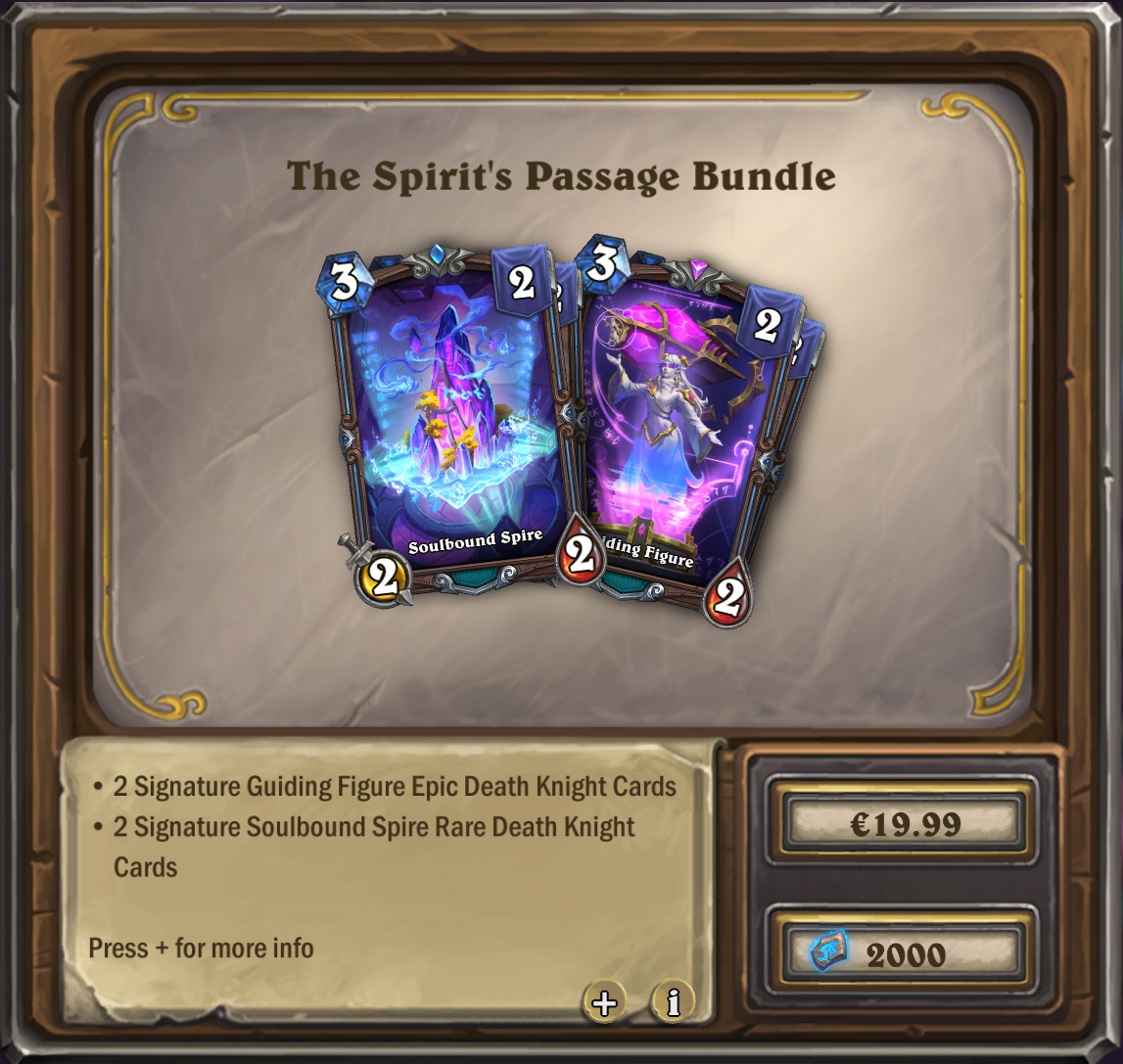 - The Spirit’s Passage Bundle (2000 Runestones or $20) – Returning Signature card bundle with 2x Guiding Figure and 2x Soulbound Spire. Originally available in November 2024 for $35 (with 5 extra card packs).