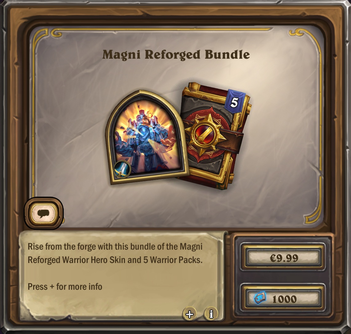 - Magni Reforged Bundle (1000 Runestones or $10) – New lite Warrior skin + 5 Warrior card packs.