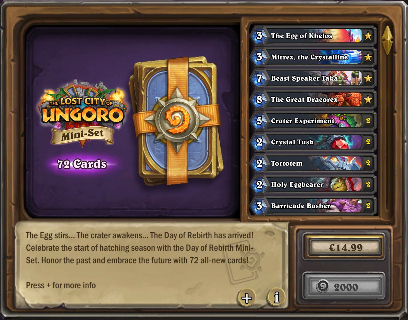 • Day of Rebirth Mini-Set (2000 Gold or $15) – A new mini-set with 38 unique cards in their normal versions. You can find a full list of cards here.