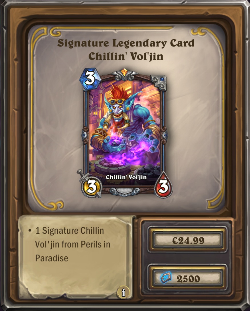• Signature Legendary Card Chillin’ Vol’jin (2500 Runestones or $25) – Signature version of Chillin' Vol'jin.