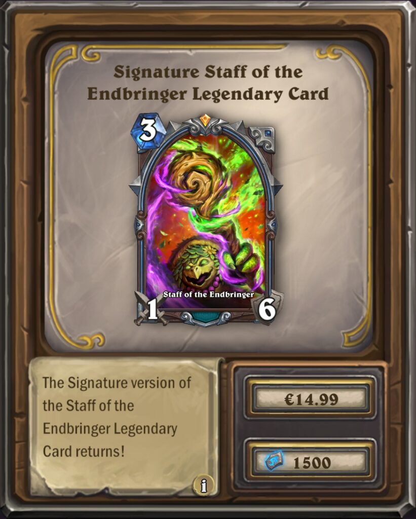 • Signature Staff of the Endbringer Legendary Card (1500 Runestones or $15) – Signature version of Staff of the Endbringer.