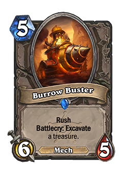 What happens next depends on your class. In 6 out of 11 classes (in lore those are “Outlaw” classes, but let’s call them non-excavate classes), you simply repeat the cycle. Fourth excavate gives you a 1 mana treasure, fifth a 2 mana treasure, and so on (1-2-3, 1-2-3). Non-excavate classes are Demon Hunter, Druid, Hunter, Paladin, Priest, and Shaman. Those can still take advantage of Excavate cards e.g. when randomly generated, but they probably shouldn’t focus on this mechanic.