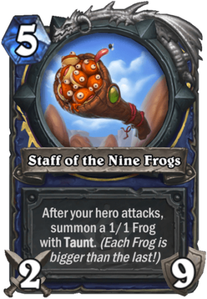 Dehydrate is an example of a Quickdraw card. It’s a 3 mana Shaman spell that deals 4 damage to a minion with Lifesteal. At its core, it works exactly the same as a pre-buff Tidal Surge. However, it also has a “Quickdraw: Costs (1)” effect – it means that the turn you draw or generate it, you can play it at a 2 mana discount.