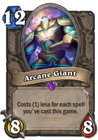 Arcane Giant has dominated One Night in Karazhan meta, but it has seen a bunch of play afterwards too. Probably the most prominent deck that used it was Malygos or Yogg Druid, which was one of the best decks at the time (before Yogg-Saron, Hope's End got nerfed, that is). Not unlike the current Druid lists, majority of the deck were spells, which means that it was rather easy to get Arcane Giant down to 0 mana, or at least close. And as you can imagine, dropping 0 mana 8/8’s is quite powerful. While the current Arcane Tyrant is easier to pull off, it doesn’t put nearly as much pressure as Giants did. Another Druid deck in which Arcane Giant has seen some play was Token Druid (a bit similar to the Token Druid decks we have right now) – it was a great late game refill in there.
